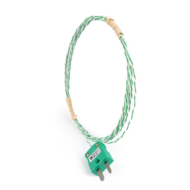 | Connecteur miniature à déconnexion rapide | Le connecteur miniature de type K standard IEC 60584/ANSI (vert) permet un branchement et un débranchement rapides et sans outil des instruments compatibles. Sa conception polarisée empêche toute insertion incorrecte, protégeant ainsi le capteur et l'instrument. |