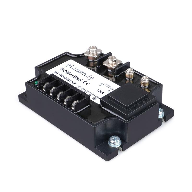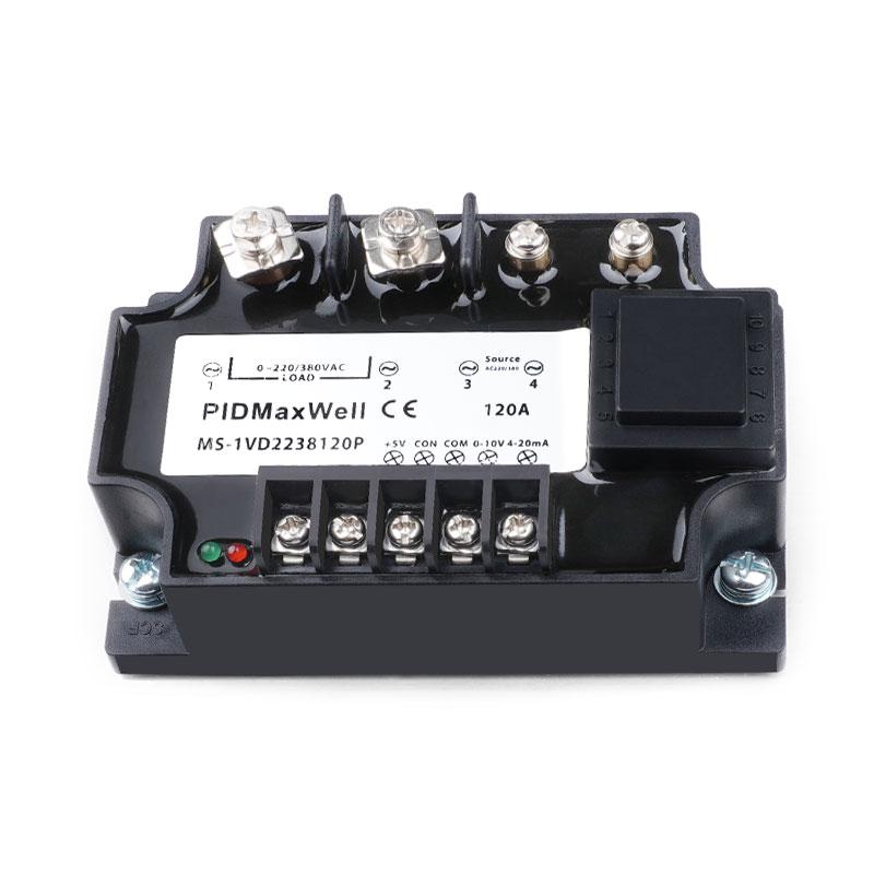 La série Maxwell MS-1VD2238 est un régulateur de puissance SCR monophasé isolé de haute précision et très économique, conçu pour un contrôle précis de l'angle de phase. Grâce à sa conception multi-entrées polyvalente, ce module à thyristors avancé prend simultanément en charge les signaux de commande 0-5 Vcc, 0-10 Vcc, 4-20 mA et potentiomètre, sans aucune modification matérielle. L'isolation optique entre les circuits d'entrée et de sortie garantit une sécurité de fonctionnement et une intégrité du signal maximales. Disponible dans une large plage de courants, de 10 A à 200 A, pour les charges 220 Vca et 380 Vca, la série MS-1VD2238 intègre un circuit de démarrage progressif et un circuit tampon interne (amortisseur) pour protéger contre les surtensions. Logé dans un boîtier robuste et ignifugé avec joint en résine, ce régulateur pour montage sur panneau est la solution idéale pour la commande d'éléments chauffants résistifs dans les environnements industriels exigeants.