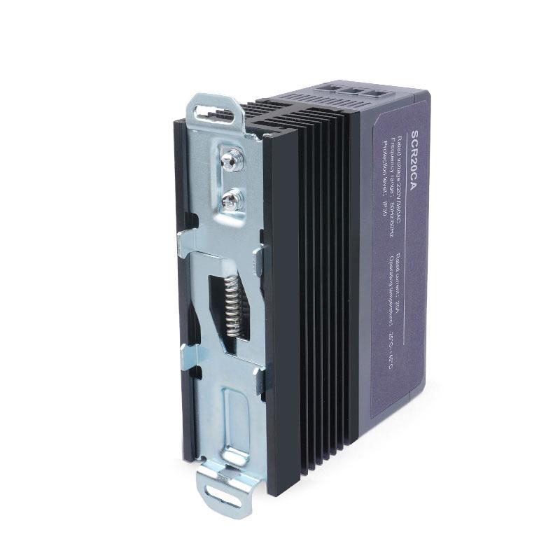 Le contrôleur et le dissipateur thermique sont combinés en une seule unité compacte ; la variante SCR20CA-S ajoute un ventilateur de refroidissement configurable pour les applications exigeantes à cycle de service élevé. |
